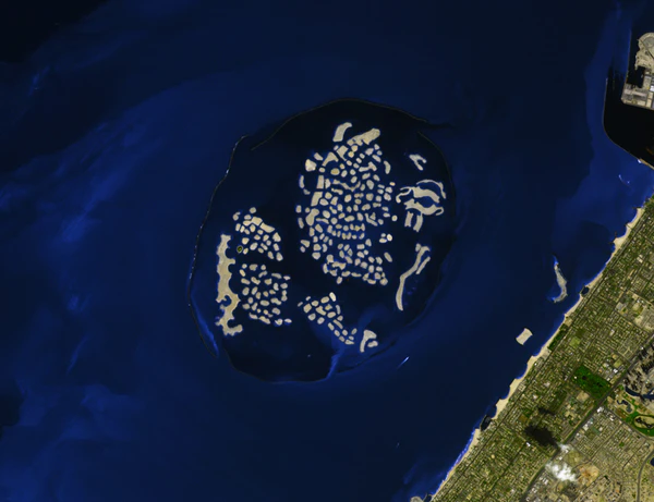 Найти место под будущий проект насыпных островов оказалось довольно сложно. Береговая линия была занята Пальмовыми островами. Тогда было принято решение построить острова в 4 км от берега[10].