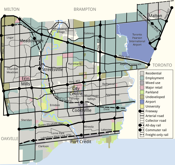 В городе строится линия лёгкого метро (скоростного трамвая) Hurontario LRT, соединяющая город с соседним Брамптоном, которая планируется к завершению в 2014 г.