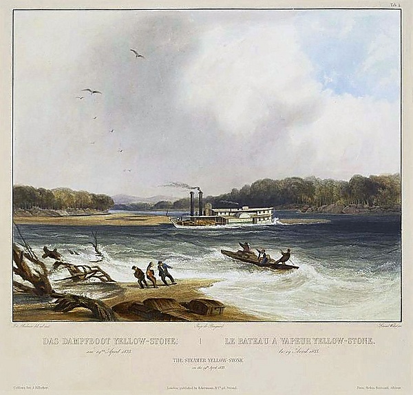 Судоходство на Миссури берёт начало с первыми лодками и каноэ индейцев, за тысячи лет до прихода на Великие Равнины европейцев. Первым пароходом на реке был Independence, который начал ходить между Сент-Луисом и Кейтесвилл (Миссури) около 1819 года[92]. К 1830-м годам почтовые и грузовые суда регулярно курсировали между Канзас-Сити и Сент-Луисом, а также довольно часто и вверх по течению реки. Лишь немногие из них, такие как пароходы Western Engineer и Yellowstone были способны ходить вверх вплоть до восточной Монтаны[93]. Особенное развитие судоходство получило во времена торговли пушниной, именно тогда пароходы и другие суда начали ходить почти по всему течению Миссури