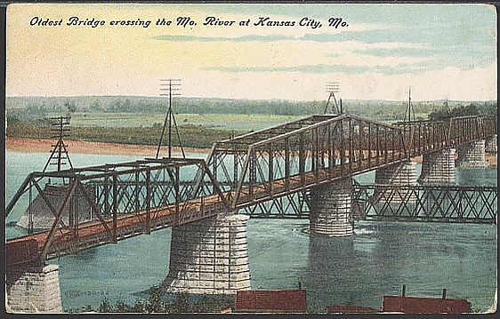В XIX веке Миссури примерно определяла границу страны, особенно в своём нижнем течении, ниже города Канзас-Сити. Все основные переселенческие тропы на американский запад начинались именно от реки, включая Калифорнийскую, Мормонскую и Орегонскую тропы, а также путь Санта-Фе. Мост Ганнибала, построенный в 1869 году в городе Канзас-Сити, стал первым мостом через Миссури[71]. Между 1830-1860-ми годами из одного только города Индепенденс в низовьях реки на дальний запад выехали более 500 тыс. человек, руководствуясь различными причинами от полного экономического краха до жажды наживы во времена калифорнийской золотой лихорадки. Распространённым исходным пунктом для путешествия был также город Омаха (Небраска), от которого переселенцы шли на запад вдоль реки Платт[72]. Основным транспортным средством вплоть до становления регулярного судоходства на реке в 1850-е годы были крытые повозки, часто называемые «шхуны прерий».