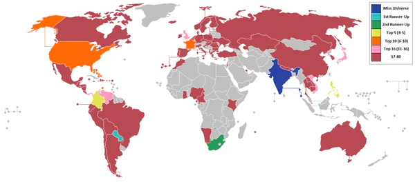 Участницы из 80 стран и территорий были выбраны для участия в конкурсе. 52 из них были победительницами национального конкурса своей страны, в то время как двадцать пять заняли второе место на национальном конкурсе или были выбраны в процессе кастинга.