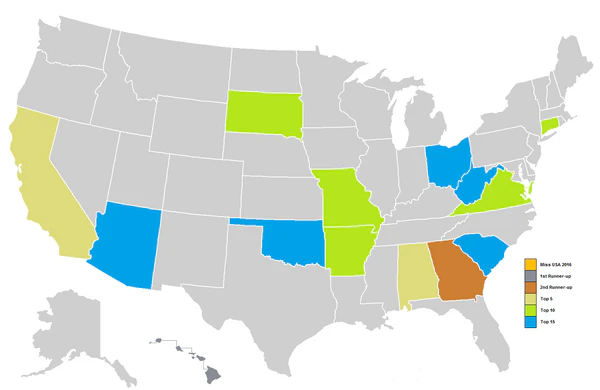 | Штат | Имя | Возраст | Рост | Родной регион/город | Место | Примечание |