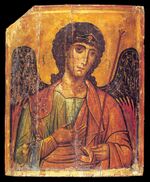 Первоначально — ангел, упоминающийся в Книге Даниила (Дан. 10:13,21 и Дан. 12:1), а также в Коране (аль-Бакара 2:98). В христианской (православной и католической) традиции Архангел Михаил — архистратиг (командующий ангельским воинством) (Откр. 12:7-9)[4].