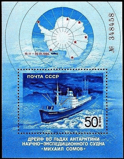 15 марта 1985 года во время обеспечения станции «Русская» «Михаил Сомов» (капитан В. Ф. Родченко) был зажат тяжёлыми льдами и оказался в вынужденном дрейфе вблизи побережья Антарктиды у Берега Хобса. С дрейфующего судна вертолётами Ми-8 было эвакуировано 77 участников экспедиции и членов экипажа на теплоход «Павел Корчагин». Эта операция была завершена 17 апреля 1985 года.