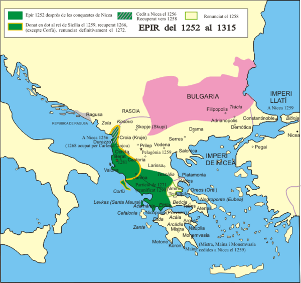 В 1267 году Корфу и большая часть царства были захвачены Карлом Анжуйским, и в 1267/68 годах Михаил II умер, и ему наследовал Никифор. В 1271 году он заключил с Карлом союз, согласившись стать его вассалом. Вскоре после Сицилийской вечерни Византия захватила у Эпира Албанию[119].
