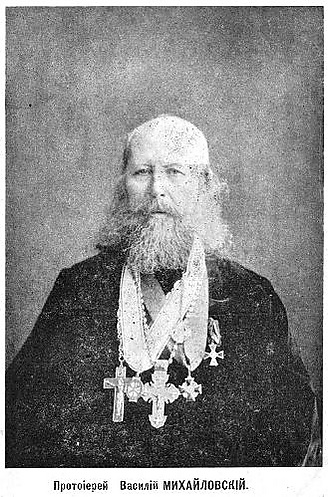 Василий Яковлевич Михайловский (1834—1910) — протоиерей Русской православной церкви, проповедник, российский духовный писатель, поэт и общественный деятель; магистр Санкт-Петербургской духовной академии. Член Императорского православного палестинского Общества по прозвищу «Петербургский златоуст».