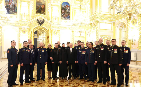 Всего в тот день высшей государственной награды были удостоены пятнадцать военнослужащих, участвовавших в специальной военной операции: М. В. Девятов, Д. Ю. Ерёмин, Э. И. Казымов, А. С. Корнилов, Ю. С. Мизерный, Д. Ц. Мункожаргалов, И. А. Мухамедеев, М. Н. Полушкин, М. В. Поташев, И. Д. Споняков, Н. Н. Харченко, С. Ю. Хашегульгов, А. А. Шелест, Я. Н. Якубов[3].
