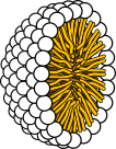 В каждой молекуле длинный гидрофобный радикал связан с полярной (гидрофильной) группой. При образовании мицеллы молекулы объединяются так, что гидрофобные радикалы образуют ядро (внутреннюю область), а гидрофильные группы — поверхностный слой мицеллы. Минимальную концентрацию поверхностно-активных веществ в растворе, при которой в системе образуются устойчивые мицеллы, находящиеся в равновесии с неассоциированными молекулами поверхностно-активного вещества, называют критической концентрацией мицеллообразования. Если дисперсионной средой является органическая жидкость, ориентация молекул в мицелле может быть обратной: ядро содержит полярные группы, а гидрофобные радикалы обращены во внешнюю фазу (обратная мицелла)[3]. Мицеллы - частицы в коллоидных системах, состоящие из нерастворимого в данной среде ядра очень малого размера, окружённого стабилизирующей оболочкой адсорбированных ионов и молекул растворителя. Например, мицелла сульфида мышьяка имеет строение: