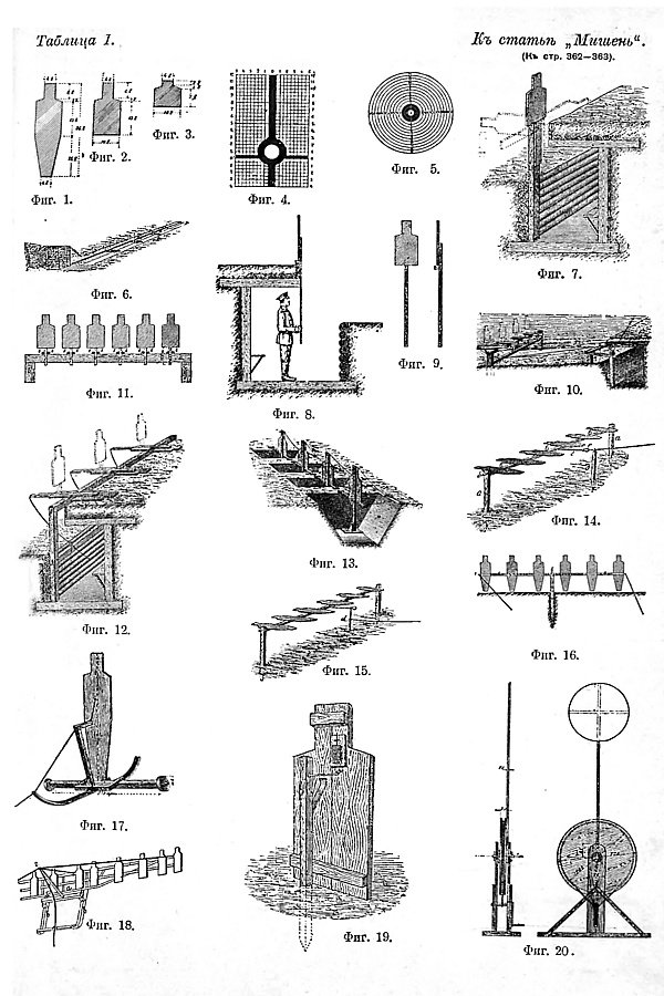 На конец XIX столетия, в военном деле России, мишень представляла из себя деревянный вертикальный щит, в который при обучении производились стрельба из артиллерийских орудий, ружей, и револьверов[1][2].
