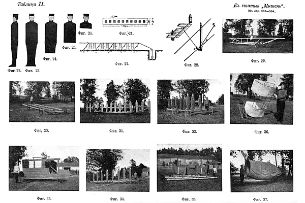 Изготавливались мишени из досок толщиною в один дюйм, так как пуля или осколки снарядов, пробившие такие доски или засевшие в них, считались смертоносными[1][2].