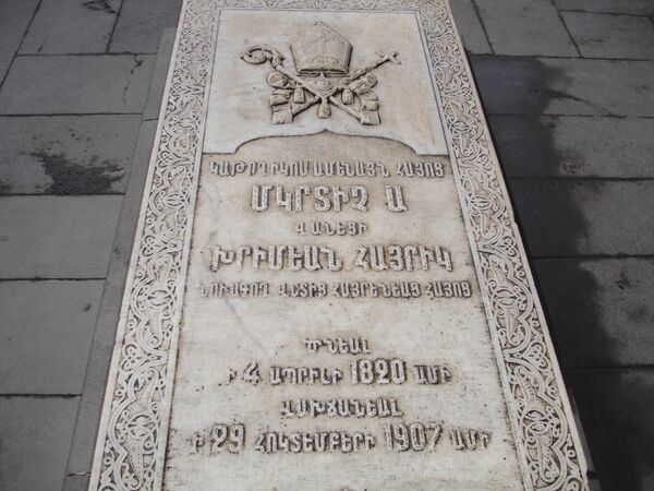 Католикос всех армян Мкртич I Хримян скончался 29 октября 1907 года на 87-м году жизни в Эчмиадзинском монастыре[20]. Айк Ачемян в своей книге «Аёц Айрик» (Отец армян) писал, что по решению Эчмиадзинского Синода и монастырской общины тело Мкртича I Хримяна должны были похоронить рядом с его предшественником католикосом Макаром I Тегутеци, однако в связи с резкими протестами верующих место захоронения было перенесено.