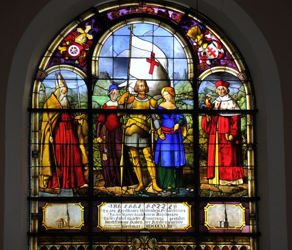 В середине XIII века немецкий крестоносец граф Ламберт (Людвиг) II фон Глейхен — участник Шестого крестового похода — бежал из турецкого плена с дочерью султана, которая стала его второй женой. Папа Римский дал согласие на то, чтобы граф, не разводясь с первой женой, взял себе в жёны турчанку, если та примет христианство. Тройной плотской брак счастливо длился до смерти супругов, о чём повествует надгробная надпись в бенедиктинском монастыре святого Петра в Тюрингии[51][52][53][54]. Сведения о двоежёнстве графа подробно приводит Н. М. Карамзин в «Письмах русского путешественника» при описании посещения Эрфурта и усыпальницы с надгробием графа, на котором изображены его супруги в монастыре на Петровой горе (Petersberg): «Я видел сей большой камень и благословил память супругов»[55].