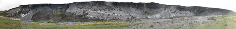 Отвесная стена, образовавшаяся в результате таяния ледника, находится на южном побережье острова Хершел и имеет размеры около 22 метров в высоту и 1300 метров в длину.