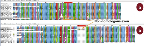 Множественное выравнивание последовательностей может быть использовано для построения филогенетического дерева[44]. Это возможно по двум причинам. Во-первых, функциональные домены, известные для аннотированных последовательностей, могут быть использованы для выравнивания неаннотированных последовательностей. Во-вторых, консервативные регионы могут иметь функциональную значимость. Из-за этого возможно использование множественных выравниваний для анализа и нахождения эволюционных связей через гомологию последовательностей. Точечные мутации и вставки/деления могут быть также обнаружены[45].