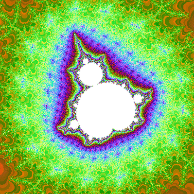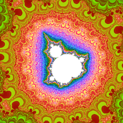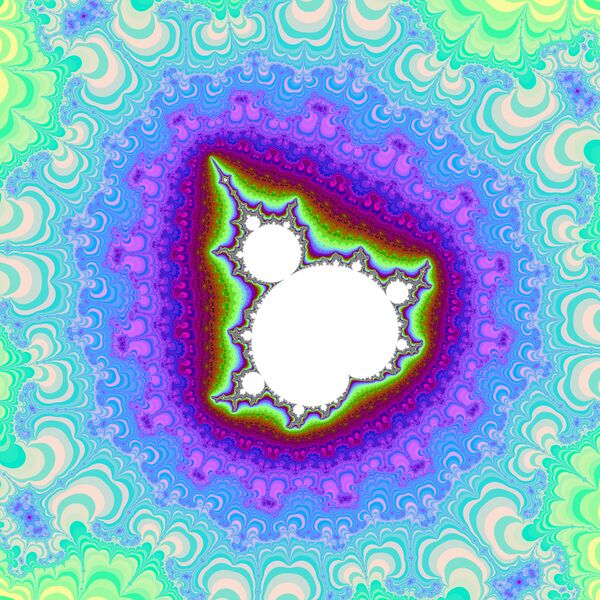Поиск красивых фрагментов цветных версий множества Мандельброта — интересное хобби для очень многих людей. Они собирают коллекции таких изображений, причём каждое из них может быть описано небольшим количеством параметров, например, просто координатами центра. Элементом творчества является не только поиск координат, но и подбор таблицы цветов, связывание её с количеством выполненных итераций, а также максимально число выполняемых итераций.