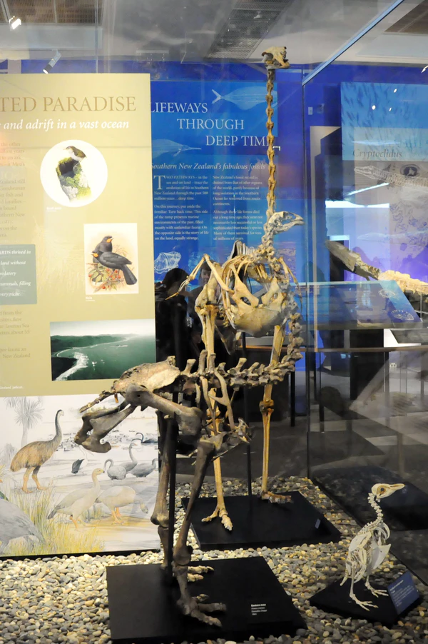 - Скелет Anomalopteryx didiformis с мышцами, кожей и основаниями перьев, собранный в пещере у Те-Анау в 1980 году[19].