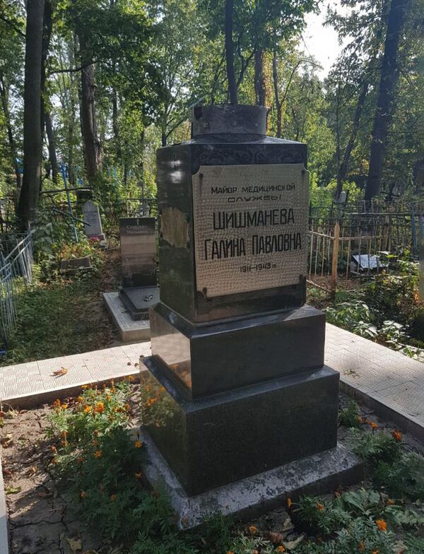 Могила майора медицинской службы, врача управления Центрального фронта Шишманёвой Г. П., погибшей в бою с немецко-фашистскими захватчиками в 1943 году, — индивидуальное захоронение на территории мемориала советским воинам в Курске. Галина Шишманёва — начальник 85-го походно-полевого госпиталя, жена маршала Василия Казакова. Погибла во время бомбёжки, похоронена на Никитском кладбище в Курске. В 1979 году могила внесена в реестр объектов культурного наследия регионального значения.