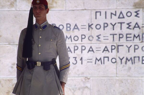 Почётный караул у Могилы Неизвестного солдата несут эвзоны Президентской гвардии.