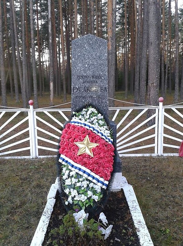 В 1943 году на могиле был установлен памятник[1]. В 1970 году в рамках создания в районном центре централизованного воинского захоронения останки генерал-майора Русакова были перенесены на воинский мемориальный комплекс в городе Пестово[2].