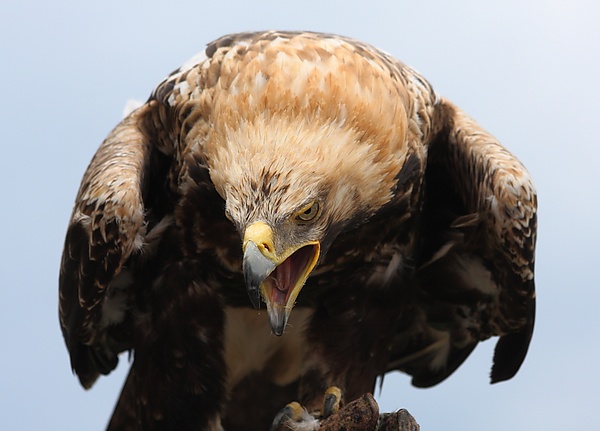 Добычу, как правило, хватает с поверхности земли, а в случае с птицами иногда на взлёте. В поисках пищи подолгу парит высоко в небе либо караулит, сидя на возвышении.