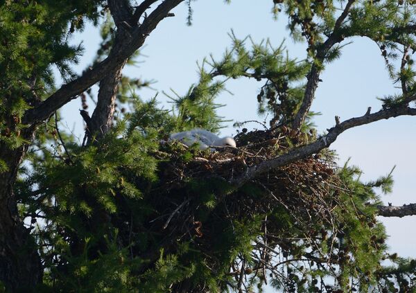 Один и тот же гнездовой участок используется постоянно многие годы.[8] Пара орлов чаще всего устраивает гнёзда на дереве на высоте 10—25 м над землёй. При их отсутствии может расположить гнездо среди ветвей низкорастущего кустарника, такого как карагана, либо очень редко на небольшой скале.[9] Отдаёт предпочтение сосне, лиственнице, тополю, берёзе, реже гнездится на дубе, ольхе или осине. В отличие от беркута, у которого гнездо обычно находится в средней части кроны, могильник чаще всего выбирает верхнюю её часть, почти вершину. Только в районах с сильными ветрами (например, в Минусинской котловине на юге Сибири) или там, где могильники обосновались относительно недавно (как на Южном Урале), гнездо может быть расположено в средней части кроны — в развилке ствола либо на ответвлении толстой боковой ветви.[17] Гнёзда, число которых на участке может достигать двух или трёх, строят оба члена пары, однако большей частью самка. Гнёзда используются попеременно в разные годы; по мнению ряда специалистов, это уменьшает количество селящихся в них паразитов — птичьих блох, пухоедов и мошек.[4] Гнездо достаточно крупное (хотя и меньше, чем у беркута) и состоит из большого количества толстых сучьев и веток. Лоток — небольшое углубление в центре гнезда — выстилается мелкими хвойными ветками, корой, конским навозом, в меньшей степени сухой травой, шерстью и разнообразным антропогенным мусором. Гнездящиеся в лесу птицы добавляют в гнездо молодые зелёные ветки — качество, более характерное для беркута. Диаметр только что построенного гнезда в среднем составляет 120—150 см, высота 60—70 см. В последующие годы гнездо заметно увеличивается в размерах, достигая по крайней мере 180—240 см в диаметре и 180 см высоты.[9] В основании старого гнезда часто селятся другие, более мелкие птицы — так, на востоке ареала в почти каждом из них отмечены поселения полевого воробья, а также нередки гнёзда даурской галки или белой трясогузки. В пока ещё пустующем гнезде могут поселиться балобаны, при этом эти соколы ведут себя достаточно агрессивно по отношению к более крупным орлам, выгоняя их из собственного гнезда.[4]