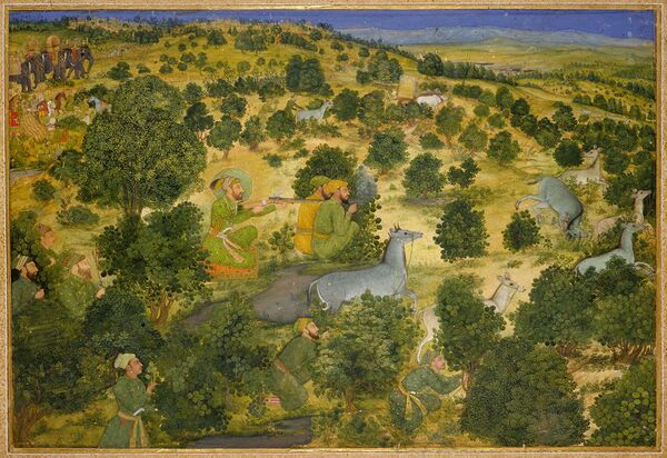 Когда старший сын Акбара принц Селим, принявший тронное имя Джахангир, занял престол, ему досталась большая империя с хорошо отлаженной административной системой управления, безопасное государство, позволявшее ему предаваться удовольствию, которое он получал от углублённого знания искусства и руководства художественным процессом. Джахангир, обладавший критическим умом и богатым вкусом, был горд своими познаниями в живописи. В своих мемуарах «Тузук-и-Джахангири» он с присущей ему откровенностью пишет: «…что же касается меня, то моя любовь к живописи и способности судить о ней достигли такой степени, что когда мне приносят неподписанные произведения ныне живущих или уже умерших художников, я моментально могу определить, чьи это работы. И если на картине нарисовано множество портретов разными художниками, я могу определить, чьей кисти принадлежит каждое изображённое лицо. А если глаза и брови на лицах были нарисованы специальными художниками, я способен определить, кто написал лицо, а кто глаза и брови».