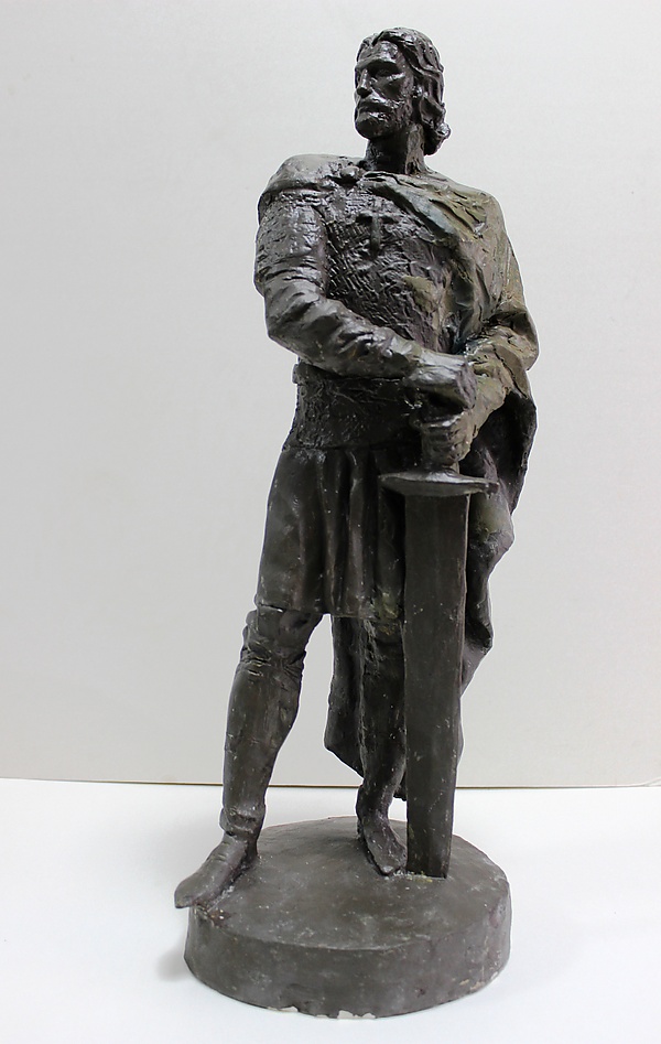 Скульптура представляет фигуру в полный рост. Изображение выполнено в фронтальном виде. Фигура стоит, опираясь на левую ногу, а правая рука отведена в сторону. Левой рукой скульптор держит рукоять меча, установленного в плинт перед левой ногой. Ладонь правой руки расположена на рукояти сверху, кисти рук находятся чуть ниже талии. Нижняя часть меча не изображена — остриё «обрезано» плинтом. Голова фигуры повёрнута влево. Лицо украшено бородой и усами. На фигуре надета свита, поверх которой видна кольчуга. На правом плече наброшен плащ, застёгиваемый пряжкой. Плащ спускается за спиной крупными складками. На ногах надеты высокие сапоги. Плинт имеет круглую форму. Размер модели составляет 52,5×24×19 см.