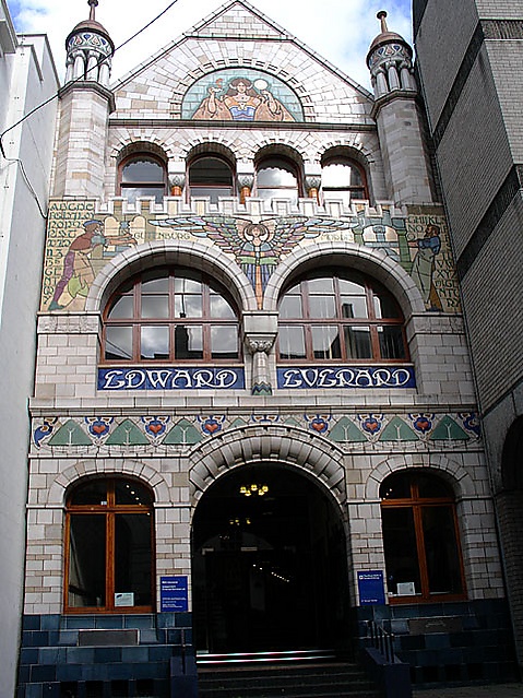 Типография Эверарда в Бристоле — ещё одна икона модерна. Архитектурное произведение Генри Уильямса прославляет историю печати от Гутенберга до Уильяма Морриса. Фасад украшен плиткой по дизайну У. Дж. Нитби[16].
