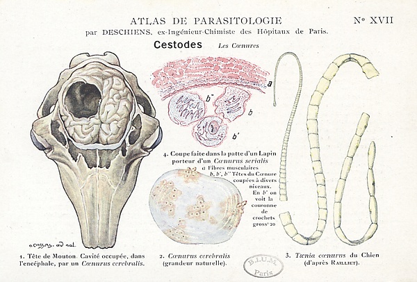 После попадания в кишечный тракт промежуточного хозяина (овцы или человека) оболочка яйца вскрывается. Вышедшая личинка-онкосфера с помощью крючьев внедряется в стенку кишечника и попадает в кровяное русло, а через него достигает головного мозга. Там онкосфера развивается в следующую стадию — ценура. Паразит разрушает мозговые ткани, вызывая смертельную болезнь ценуроз. Для поражённых животных характерны бессмысленные движения по кругу (другие названия заболевания — «вертячка» или «вертёж»), задирание головы, судороги, нарушения иннервации периферических органов, потеря зрения и обоняния. Для замыкания жизненного цикла окончательный хозяин должен съесть больное или павшее животное.