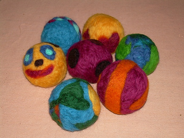 Способ отделения волокон от шерсти предполагает валяние в руках небольших деталей — шариков, жгутов. Для этого не нужна ни подложка, ни сетка.