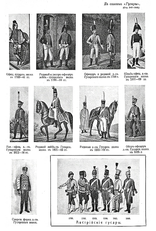 - Гусары // Военная энциклопедия : [в 18 т.] / под ред. В. Ф. Новицкого … [и др.]. — СПб. ; [М.] : Тип. т-ва И. Д. Сытина, 1911—1915.