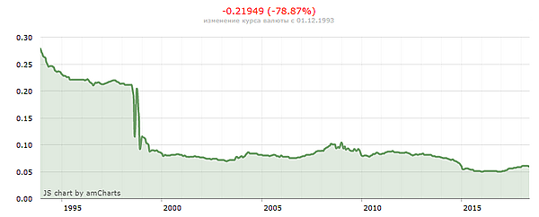 Наиболее сильное падение курса национальной валюты произошло в 1998 году, вслед за дефолтом в России[73].