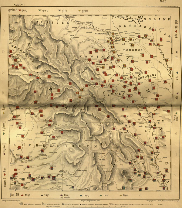 Карты распространения румынского языка на начало XX века, сделанные Густавом Вейгандом: