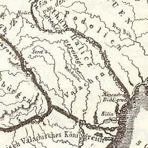 К IX веку на этих землях возникло несколько территориальных объединений, которые были созданы скорее для координации сил в борьбе с противником. Каждым таким «государством» управлял князь, который имел военную, судебную и административную власть и являлся крупным землевладельцем. Несколько объединений составляли более крупное воеводство, которым управлял воевода. Его основным занятием была координация военных действий во время войн[33]. Ещё в VII веке часть междуречья Прута и Днестра вошла в состав Первого Болгарского царства, однако позже оно было разбито Византийской империей, далее южная часть вошла в состав Второго Болгарского царства, а северо-восточная его часть вошла в состав Киевской Руси. В 1116 году Владимир Мономах назначил своего наместника в Придунавье. С распадом Руси междуречье Днестра и Прута непродолжительное время контролировалось Галицко-Волынским княжеством. Во второй половине XIII — первой половине XIV веков юго-восточная часть Днестровско-Карпатских земель входила в состав Золотой Орды. Районы карпатских предгорий непосредственно не входили во владения Орды, но, очевидно, находились от неё в определённой зависимости.