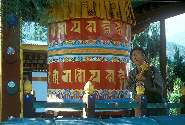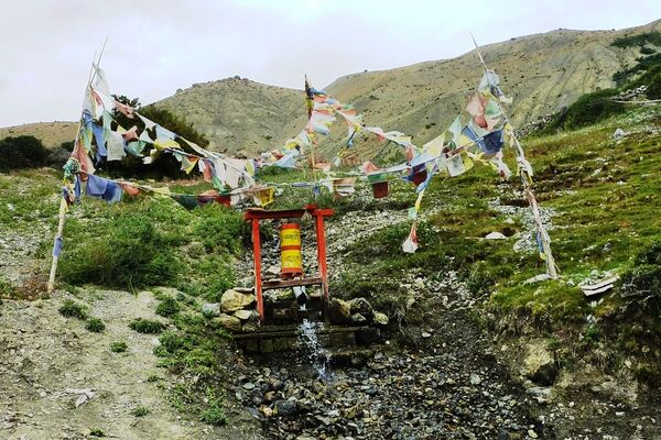 Этот вид молитвенного барабана — простое молитвенное колесо, которое поворачивается под действием бегущей воды.