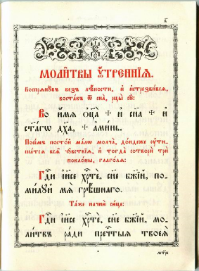 Сложившийся к настоящему времени в Русской Православной Церкви порядок чтения утренних молитв при молитве по молитвослову имеет следующий видМолитвы утренние: