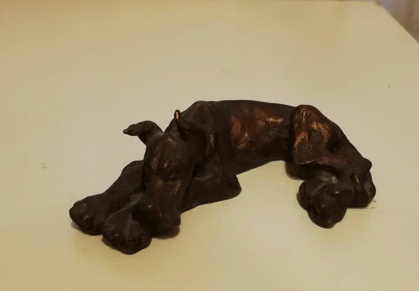 Скульптура представляет собой трёхмерное изображение собаки породы дог в положении лёжа. Передние лапы собаки вытянуты параллельно вперёд, а голова покоится на левой передней лапе. Позвоночник слегка изогнут. Задние лапы полусогнуты: левая располагается поверх правой, а кончик хвоста загибается на заднюю левую лапу. Объёмное изображение передаёт естественность и динамику движения животного. Размер произведения составляет 7×22,5×14 см. Скульптура тонирована в чёрный цвет.