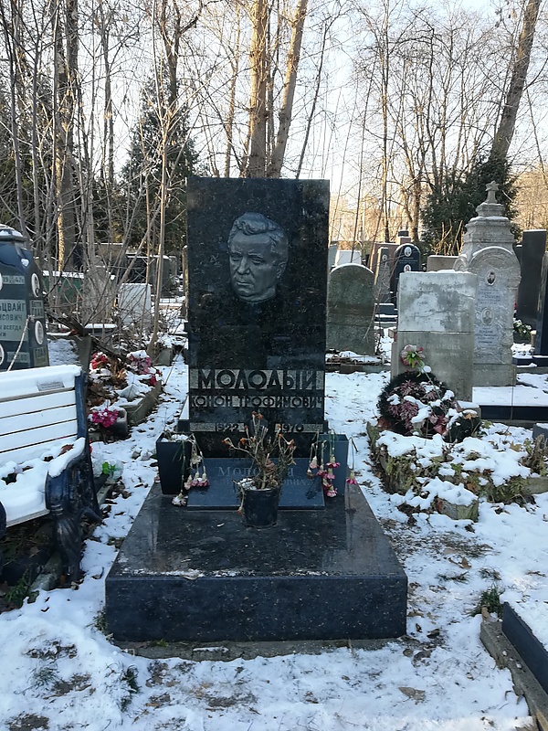 Похоронен на Донском кладбище Москвы (1 уч.). На мраморной плите его могилы выбито: «Конон Трофимович Молодый, полковник».
