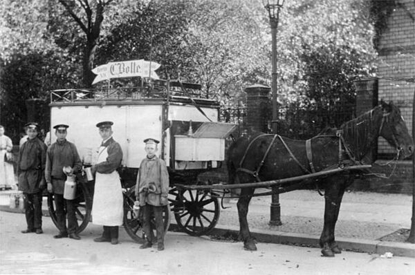 В англоязычных странах доставка молока обычно осуществлялась в небольших бутылях прямо на дом[5], и двери (а в некоторых случаях даже стены) большинства частных домов в этих странах вплоть как минимум до 1920-х годов изначально делались с небольшими квадратными дверками в нижней части дверного полотна или боковой стены, через которые молочники перемещали бутылки в помещение[6]. В Великобритании 1940-х годов молочники носили особую «форменную» одежду, а оплату за свои услуги брали непосредственно с горожан раз в неделю[7].