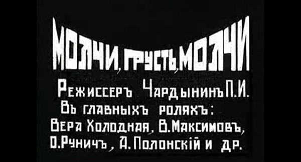 «лебединой песнью» частновладельческого кино видится самая знаменитая двухсерийная лента 1918 года «Молчи, грусть, молчи (Сказка любви дорогой)»… Это была трогательная и чувствительная история неотразимой циркачки Полы, которую играла Вера Холодная. А вокруг героини Чардынин собрал целый букет партнеров, «королей экрана»…[18].