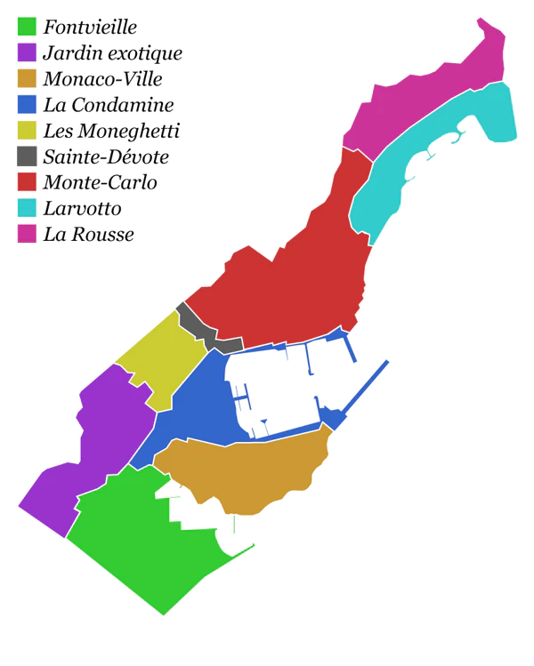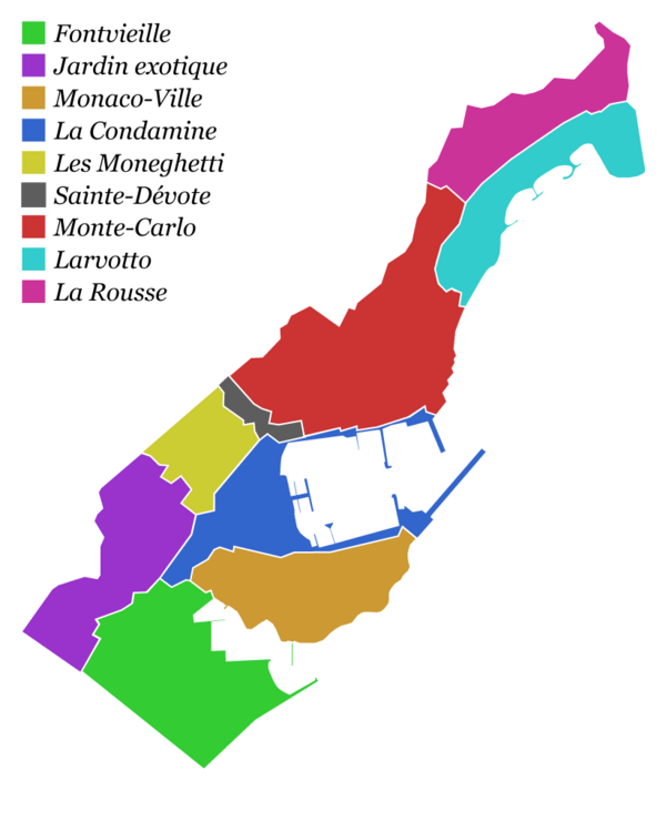 - Монте-Карло — самый богатый и престижный район. Главная курортная зона, здесь расположены самые богатые резиденции.