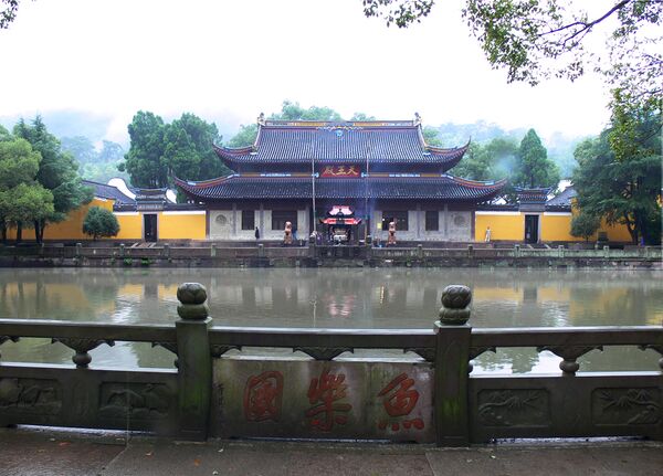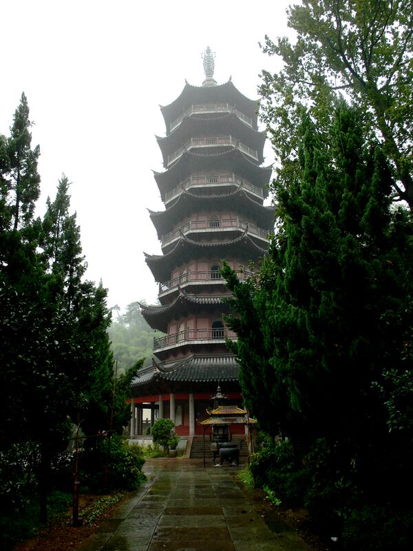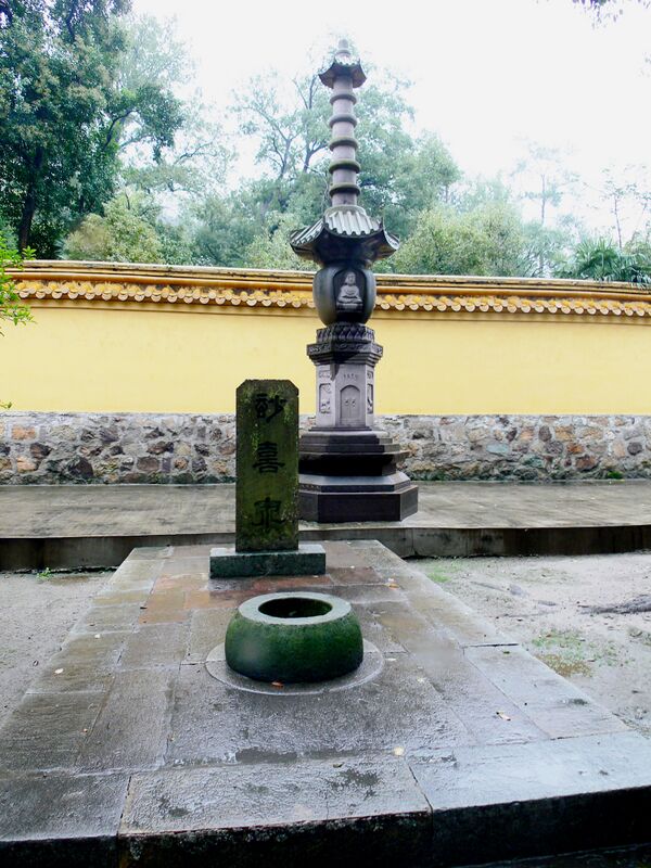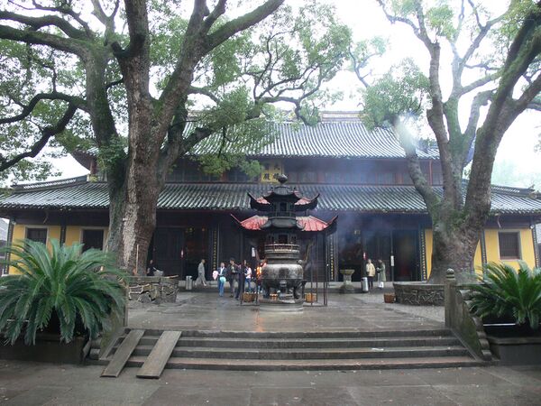 Согласно легенде, Ашока считал район Нинбо местом уединённым и спокойным. Вскоре туда отправился старший монах в поисках места для основания нового храма. Услышав звук горячего источника, монах пошёл на звук и перед ним чудесным образом возник храм[2]. Позже в 405 году рядом со старым храмом был построен новый, Храм Ступы, а также многие другие здания.