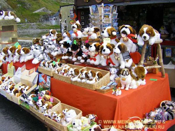 По обе стороны границы представлено большое количество тематических сувениров, в основном со ставшими знаменитыми собаками монастыря[7].