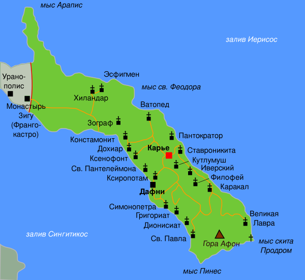 Хотя в Византии не существовало монашеских орденов, между отдельными монастырями могли устанавливаться индивидуальные или территориальные взаимоотношения. Характер этих связей мог быть различным, от права собственности до номинальных отношений чести. Крупные монастыри, такие как столичный монастырь Пантократора, могли иметь дочерние монастыри, которыми управляли не игумены, а экономы. На Вифинском Олимпе, Латрской горе, вокруг монастыря Симвулона и на Афоне образовались монашеские «конфедерации». Афонские монастыри имели общее управление, возглавляемое протом и, до некоторой степени, общее имущество[112].