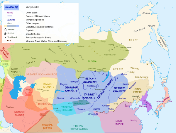 В XIV—XVII веках территорию Монголии делили между собой чингисиды и ойраты — западные монголы, постепенно создавшие сильное Джунгарское ханство.