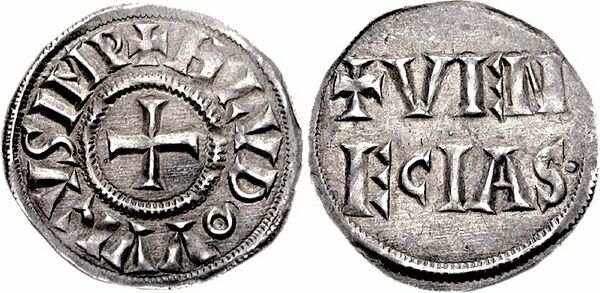 Первую из сохранившихся монет, которую можно идентифицировать по надписи «VENECIAS», датируют 819—822 годами, временем правления Людовика I Благочестивого[4]. В последующие годы в Венеции чеканили большое количество денариев, часть из которых имело обозначение места выпуска, часть — нет. В целом, их вид и особенность чеканки не отличались от подобных монет других западноевропейских городов[5].