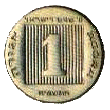 | 1 прута | 21 | 1,3 | Аверс: якорь; текст «Израиль» на иврите и арабском языке; Реверс: цифра «1»; текст «прута» на иврите; две стилизованных ветви оливы по кругу. |