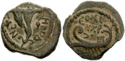 | 10 прут | 24,5 | 1,6 | Аверс: амфора и две стилизованные пальмовые ветви; текст «Израиль» на иврите и арабском языке; Реверс: цифра «10»; текст «прута» и дата выпуска на иврите; две стилизованных ветви оливы по кругу. |