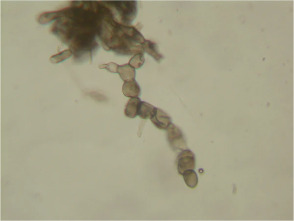 В тёплую, дождливую погоду на черешках, цветоножках и нижней стороне листьев может наблюдаться конидиальное спороношение гриба в виде мелких пустул белого цвета; при этом конидии (бесцветные, длиной 17—25 мкм и шириной 10—15 мкм, чаще овальной формы) собраны в разветвлённые цепочки[3].