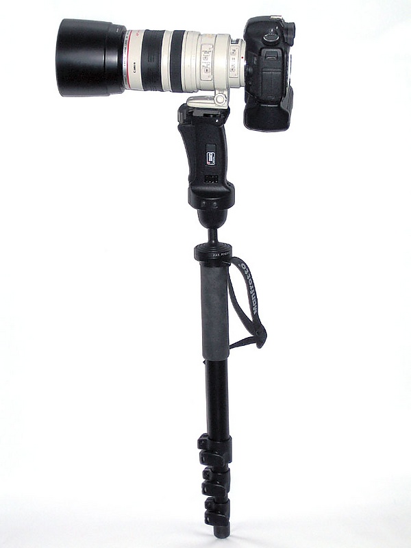 При правильном использовании монопода фотограф, расставив ноги, наклоняется всем телом и упирается в наклоненный к нему монопод так, что образуется подобие трёхногого штатива.